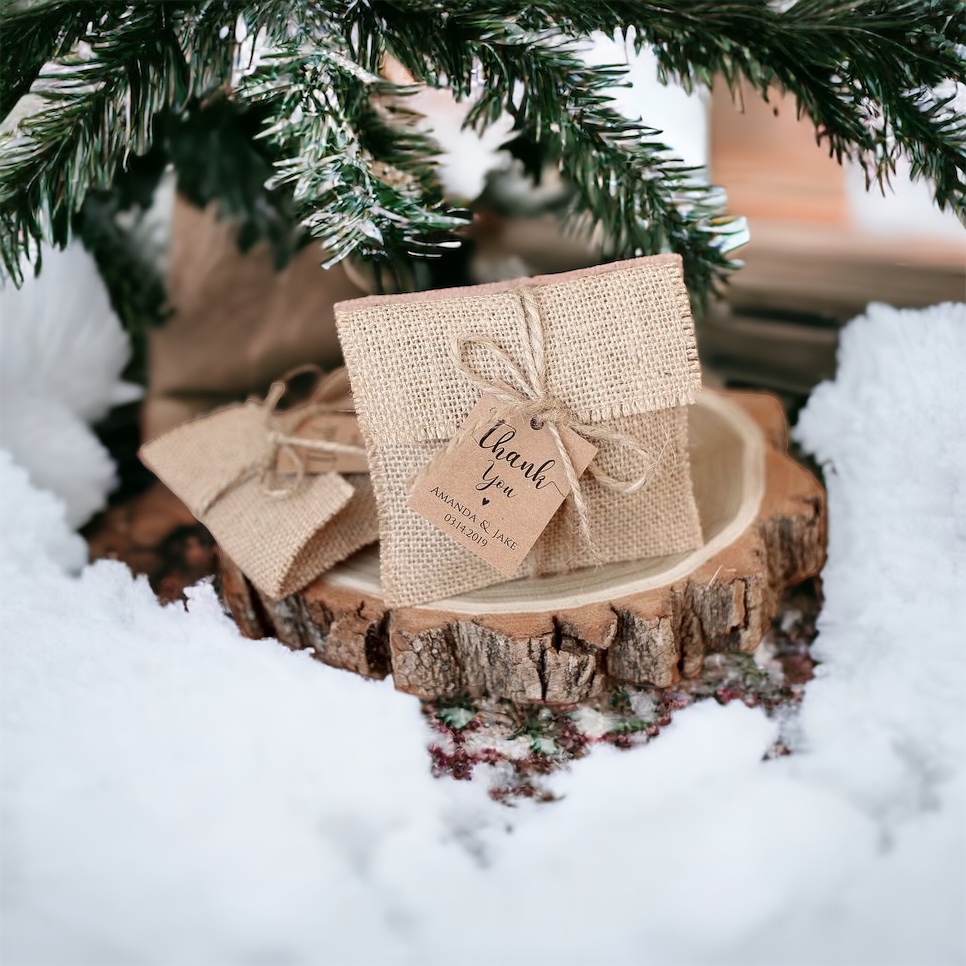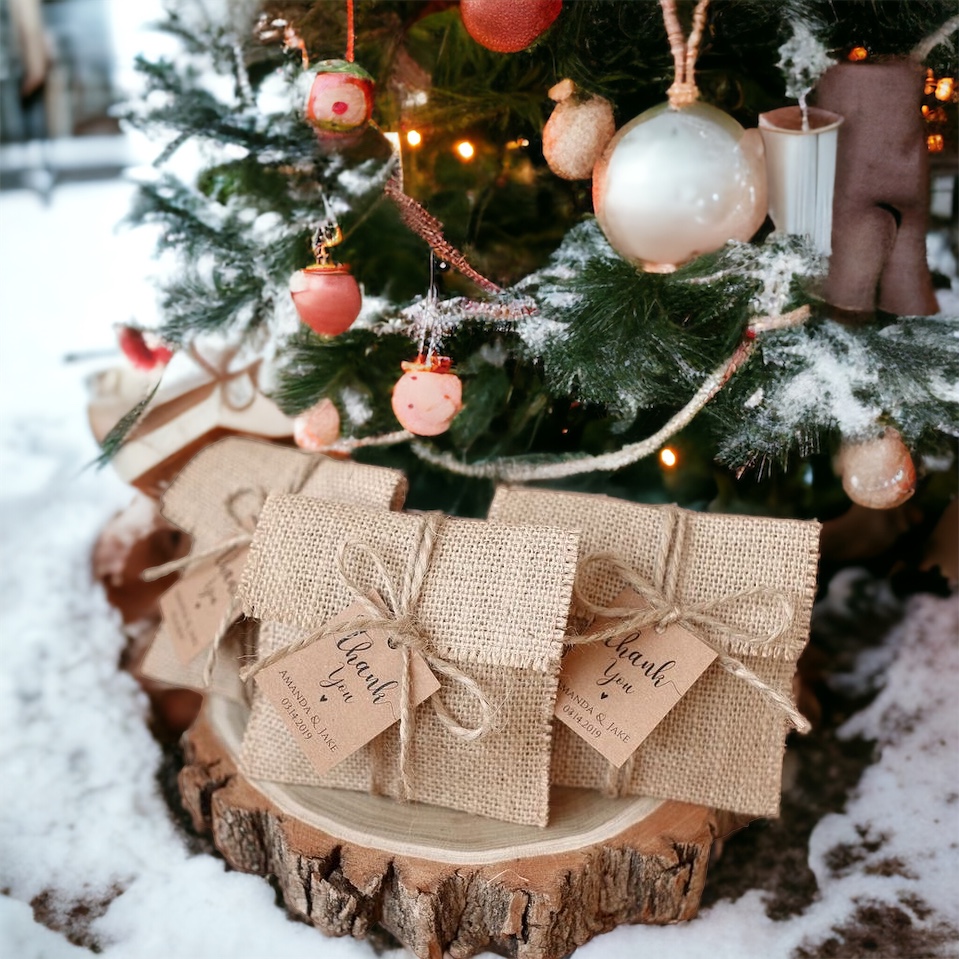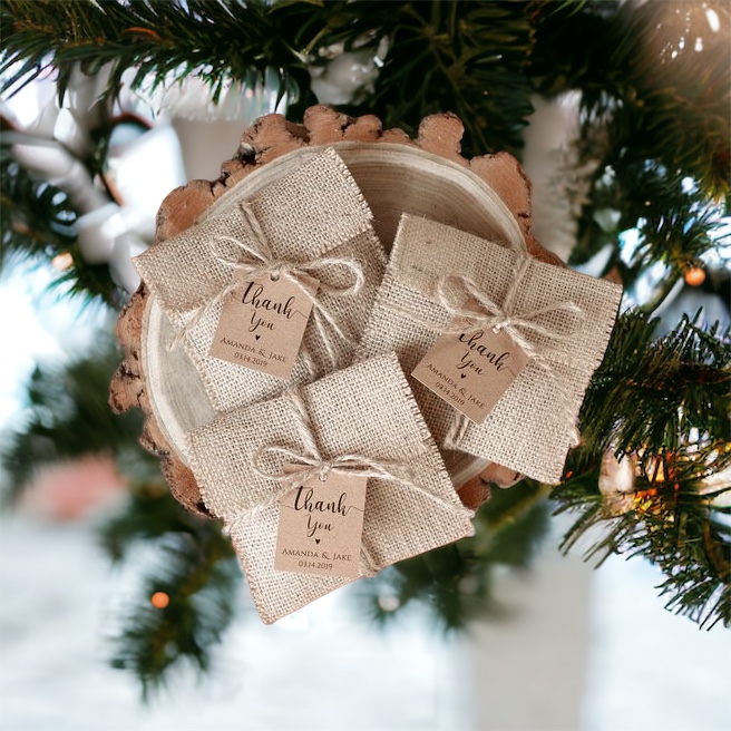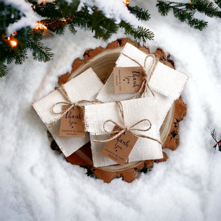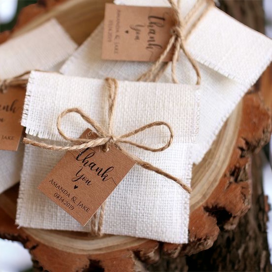 Introducing our burlap envelope favor bag, crafted from high-quality burlap material, with dimensions approximately 14×19 cm (5.55×7.48 inches). Each order includes cut organza ribbon for you to fashion delightful bows around the envelopes, adding an extra touch of charm.
