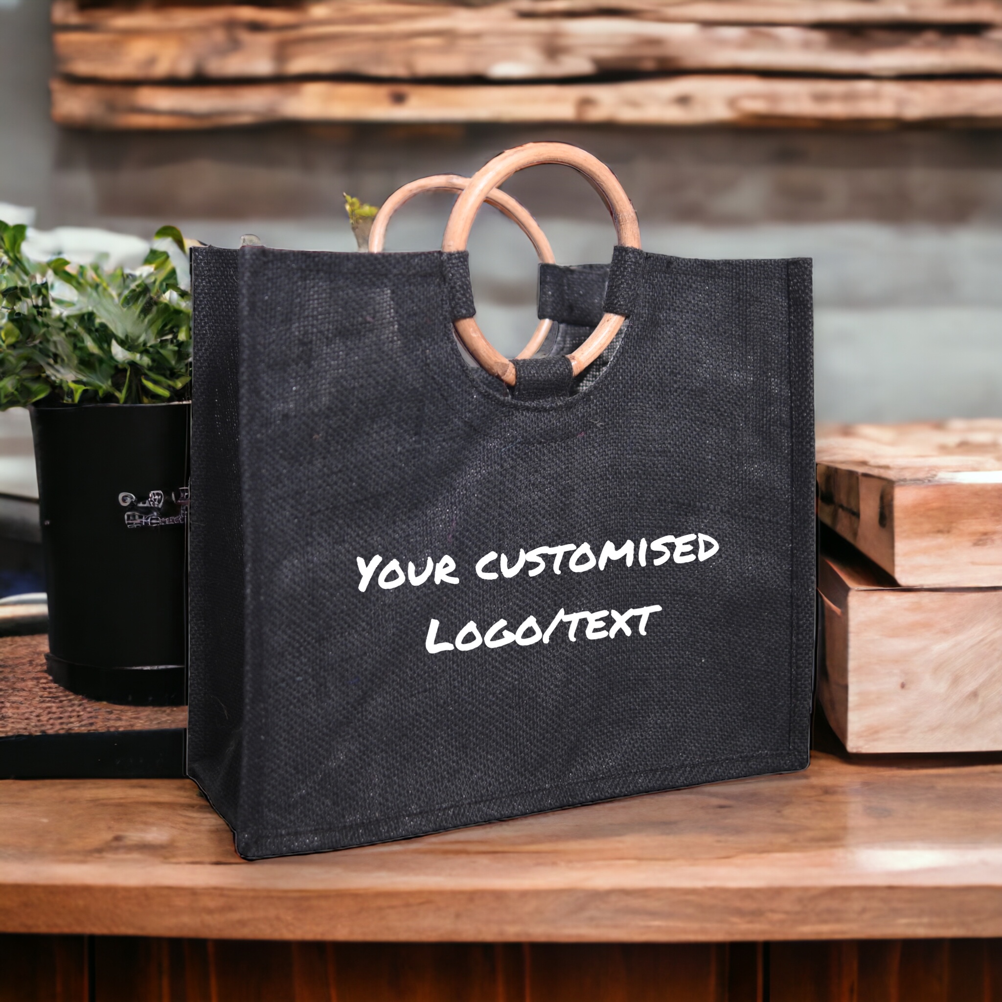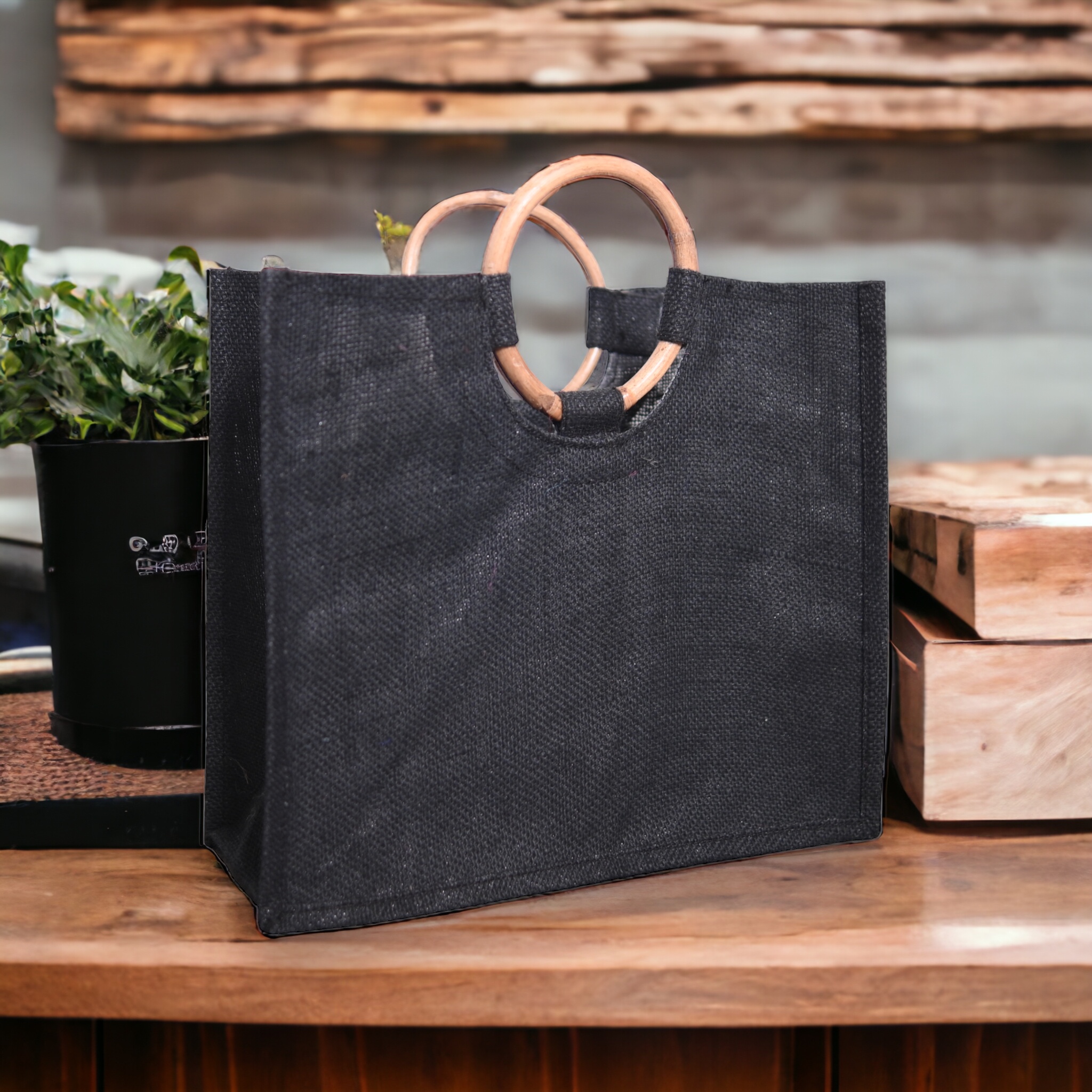 Bamboo handle jute bag